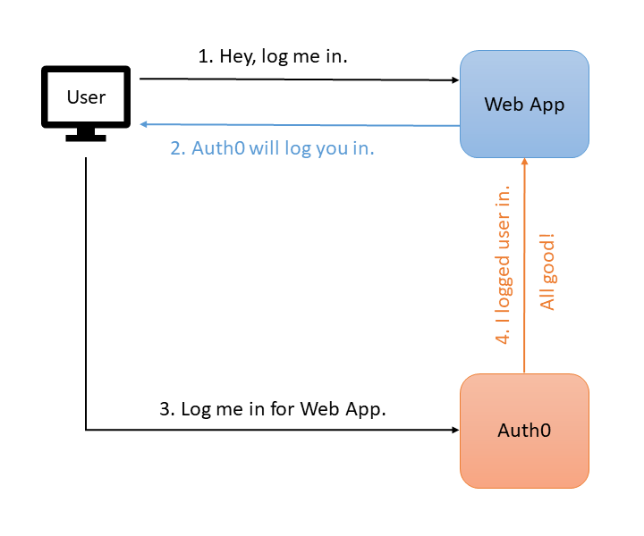 An Auth0 application will represent the Web App (blue box) and allow use of Auth0 for authentication.