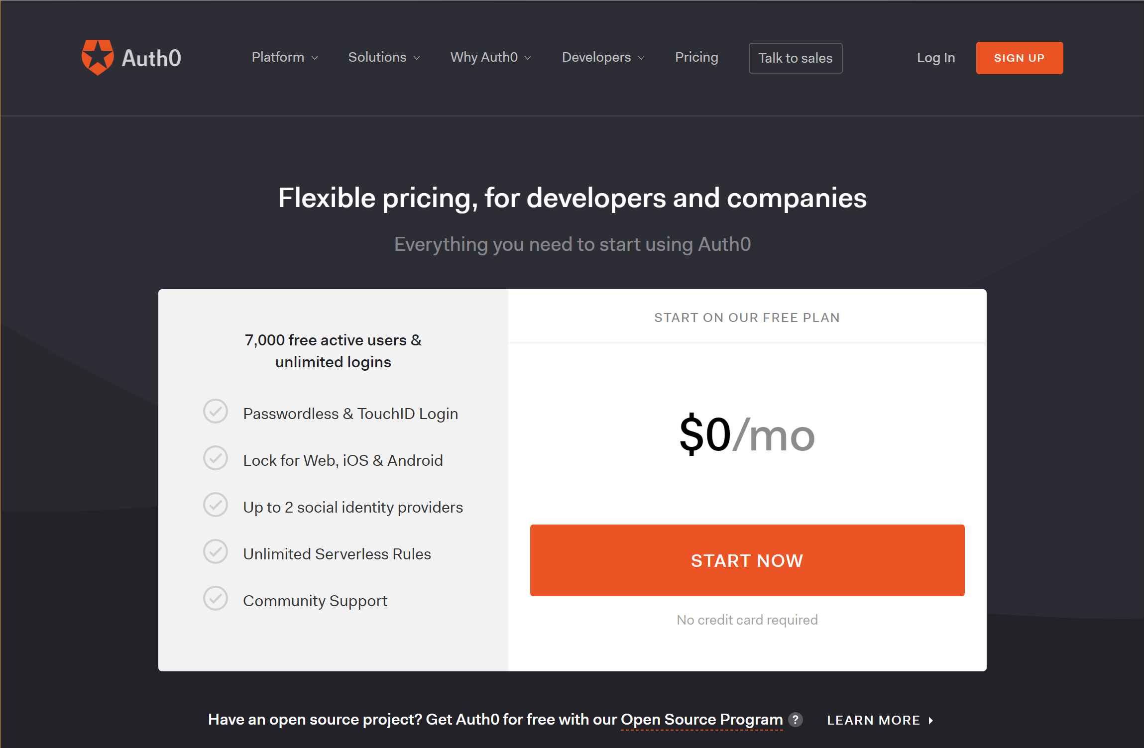 Before you start you need Auth0 account. If you don't have one, go to https://auth0.com/signup and sign up. There is a Free pricing plan.