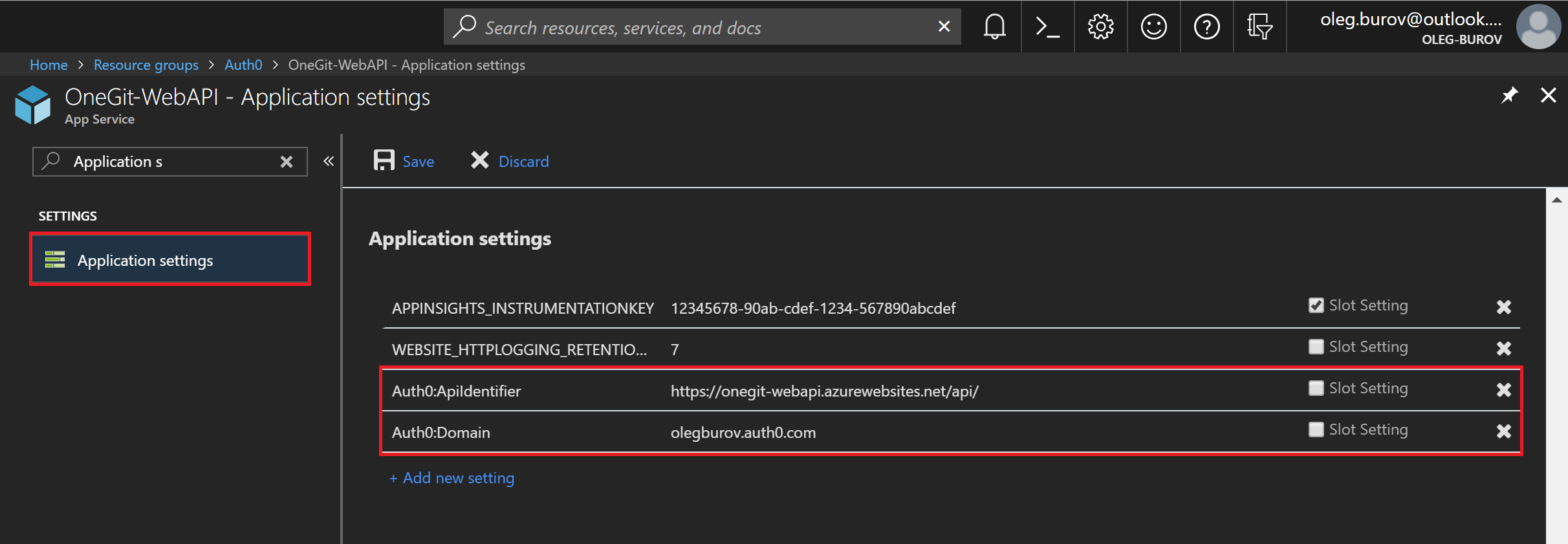 If you're going to deploy the Web API to Azure App Service as I did, most likely you need to overwrite some of the above settings with specific values for your PRODUCTION deployment.